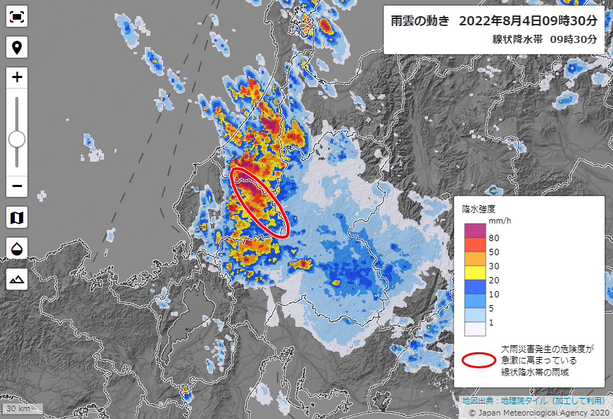令和4年8月4日、福井県で線状降水帯が発生しました。